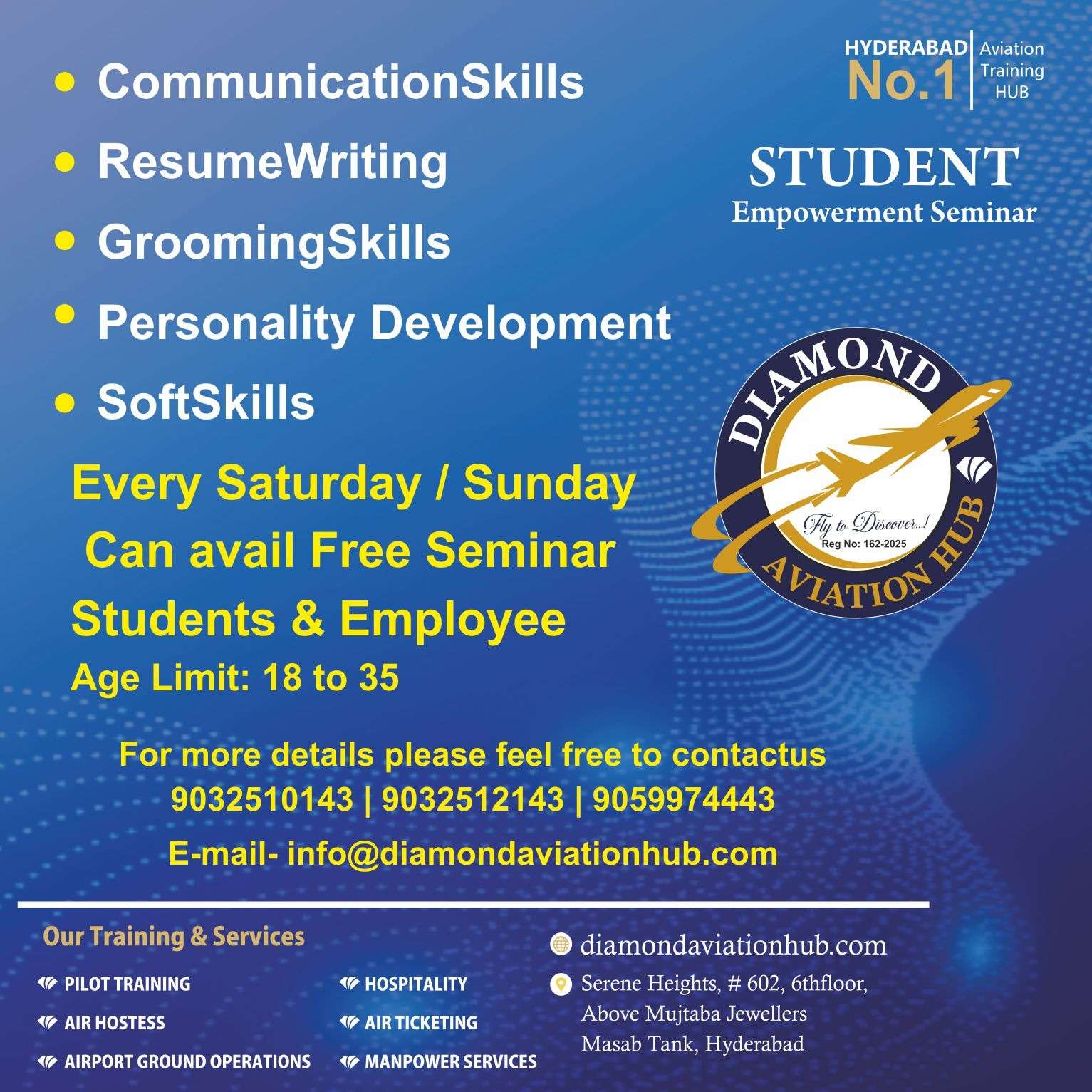 Adopting a proactive approach to learning, honing effective communication skills for teamwork, cultivating a keen eye for detail, sharpening critical thinking abilities for efficient problem-solving, mastering time management to meet project deadlines, and nurturing creativity are all essential components for building a successful and impactful career in the aviation industry. The skills and attributes developed through the International Diploma in Aviation Cabin Crew & Ground Staff program at our institute provide a strong foundation for aspiring professionals. As the leading Air Hostess Course training institute in Hyderabad, we are dedicated to equipping you with the knowledge and expertise required for a dynamic and rewarding career in the aviation field. With our comprehensive training, you will be well-prepared to excel in various roles and make a significant contribution to the industry.
